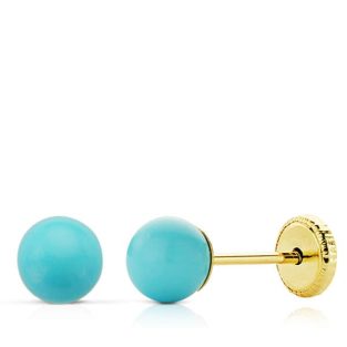 18K PENDIENTES ORO AMARILLO TURQUESA 5 MM ROSCA