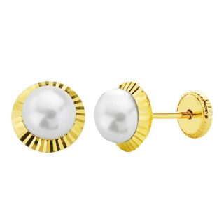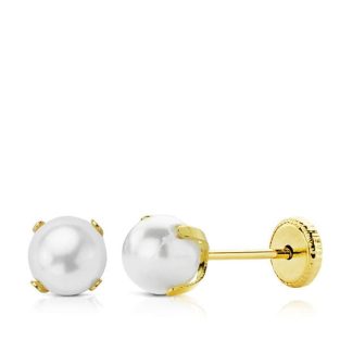 18K PENDIENTES ORO AMARILLO PERLA ROSCA 6 MM