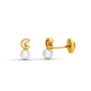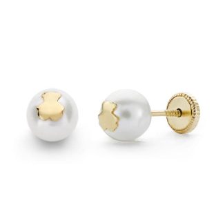 18K PENDIENTES ORO AMARILLO PERLA Y OSO . 6 MMROSCA