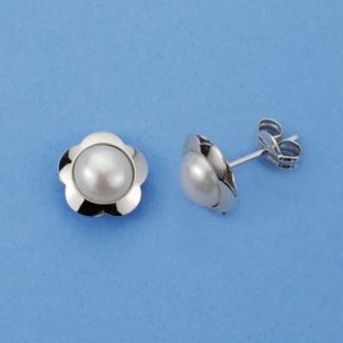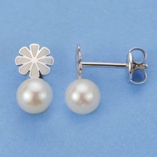 18K PENDIENTES PERLA FLOR 9X9 MM