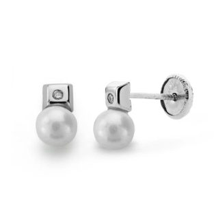 18K PENDIENTES ORO BLANCO CON DIAMANTES Y PERLA CIERRE ROSCA