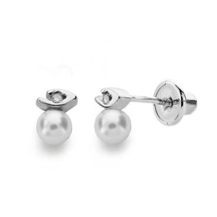 18K PENDIENTES ORO BLANCO PERLA 3 MMDIAMANTES TALLA BRILLANTE 0.012 KTS