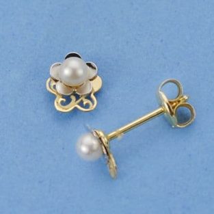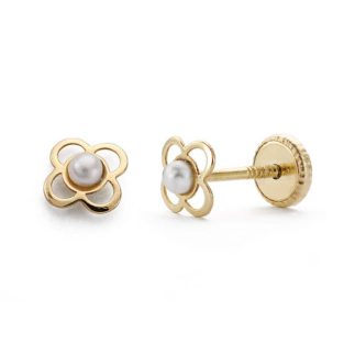 18K PENDIENTES ORO AMARILLO NIÑA FLOR PERLITA ROSCA