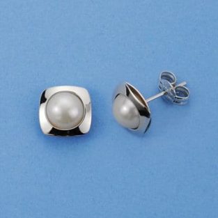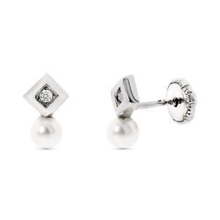 18K PENDIENTES ORO BLANCO PERLA CUADRADOS 8X8 MM