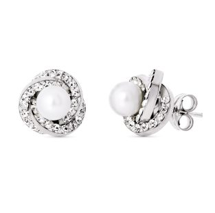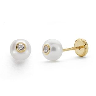 18K PENDIENTES PERLA Y CIRCONITA 5 MM ROSCA