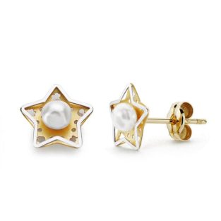 18K PENDIENTES ORO AMARILLO ESTRELLA Y PERLA 8X8 MM