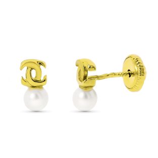 Pendientes con Tornillo Oro Amarillo y Perlas