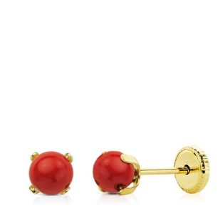 18K PENDIENTES NACAR 9 MMPIEDRA ROJA 3 MM PRESION