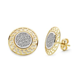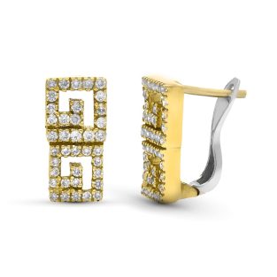 18K PENDIENTES ORO BICOLOR GRECA CIRCONITAS