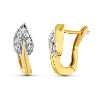 18K PENDIENTES BICOLOR CIRCONITAS HOJA Y CIRCONITAS