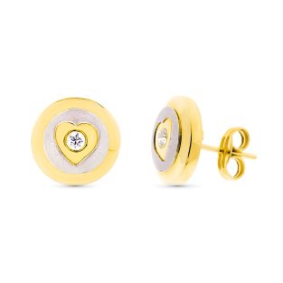 18K PENDIENTES ORO BICOLOR CIRCONITAS 10 MM