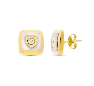 18K PENDIENTES ORO BICOLOR CUADRADOS 11X11 MM