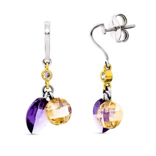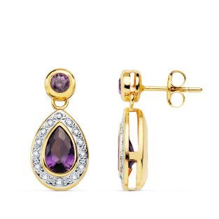 18K PENDIENTES ORO BICOLOR AMATISTA Y TOPACIO