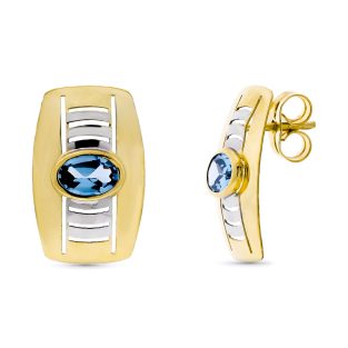 18K PENDIENTES ORO BICOLOR PIEDRA OVAL PRESION