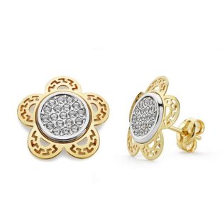 18K PENDIENTES ORO BICOLOR FLOR 12X12 MM
