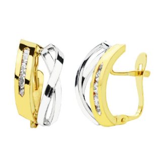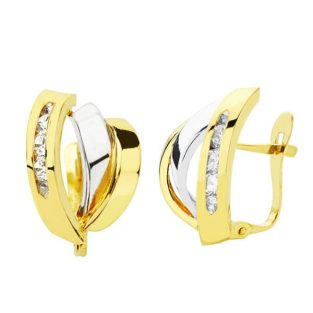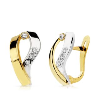18K PENDIENTES ORO BICOLOR CIRCONITAS PRESION