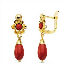 Pendientes de Oro y Coral de Mujer, en Oro de Ley de 18 Kilates.