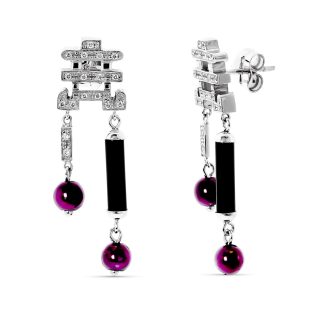 18K PENDIENTES ORO BLANCO LARGOS Y PERLA CHOCOLATE