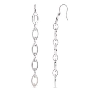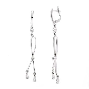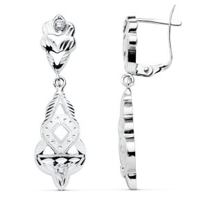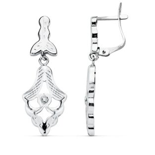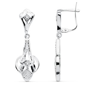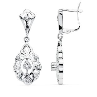 18K PENDIENTES ORO BLANCO LARGO CON CIRCONITAS 33X13 MM CIERRE CATALAN