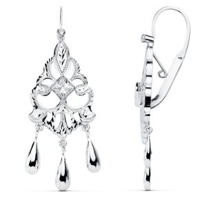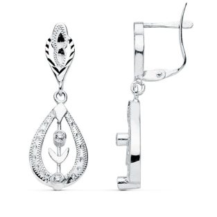 18K PENDIENTES ORO BLANCO LARGOS FLORES