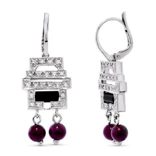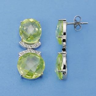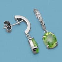 18K PENDIENTES ORO BLANCO PIEDRA COLOR 16X14 MM CIERRE OMEGA