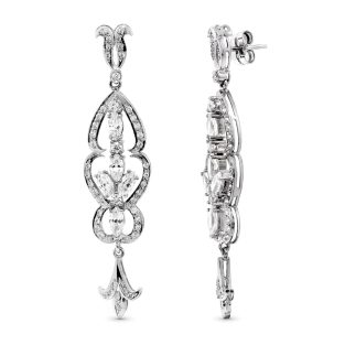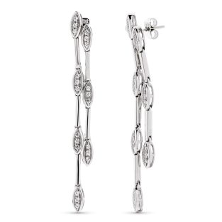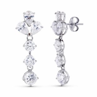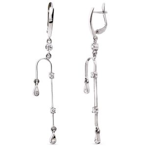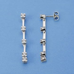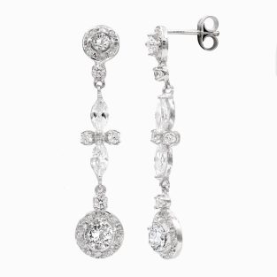 18K PENDIENTES LARGOS DE ORO BLANCO CON CIRCONITAS Y PIEDRAS