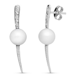18K PENDIENTES ORO BLANCO PERLA Y CIRCONITAS