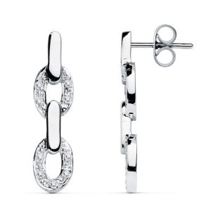 18K PENDIENTES ORO BLANCO CIRCONITAS 25X9 MM