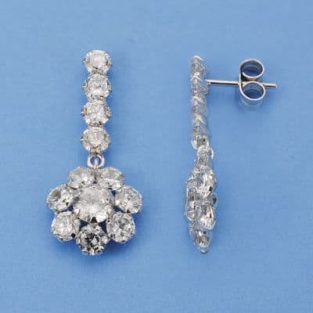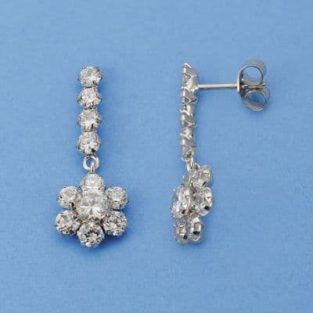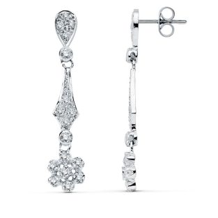 18K PENDIENTES ORO BLANCO FLORES CIRCONITAS 20X10 MM