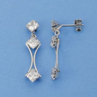 18K PENDIENTES ORO BLANCO CIRCONITAS RECTANG. 17X9 MM