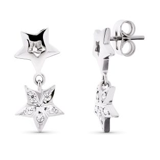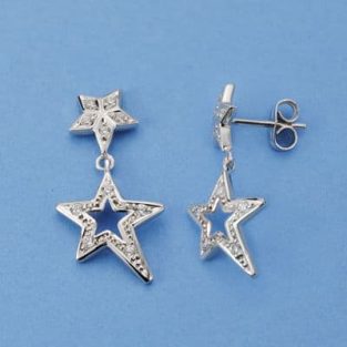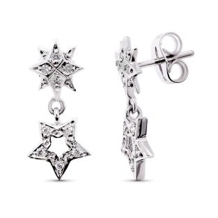 18K PENDIENTES ORO BLANCO LARGOS ESTRELLAS