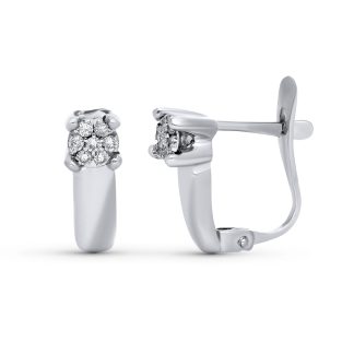 18K PENDIENTES ORO BLANCO CHATON DIAMANTES 0.140 QTS VS2-G. PRESION