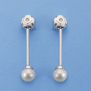 18K PENDIENTES ORO BLANCO DIAMANTES TALLA BRILLANTE Y PERLA 5X4 MM