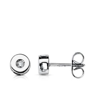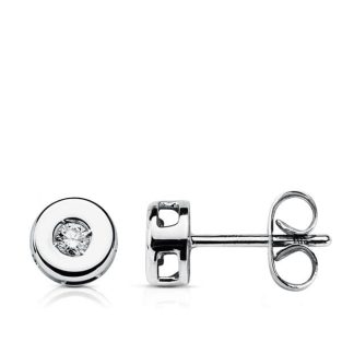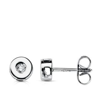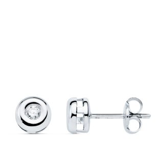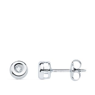 18K PENDIENTES ORO BLANCO CHATON 6 MM DIAMANTES 0.10 QTS.