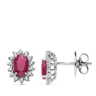 18K PENDIENTES ORO BLANCO RUBI 1.00 QT. DIAMANTES 0.28 QTS. SI-H