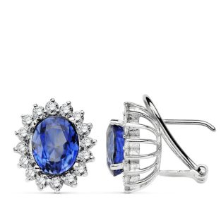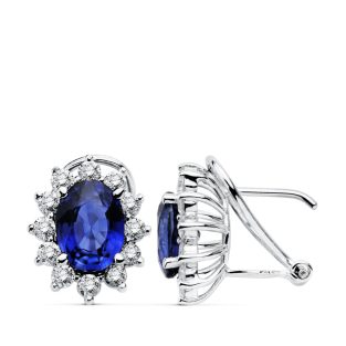18K PENDIENTES ORO BLANCO DIAMANTES 0.84 QTS ZAFIRO 3.26 QTS