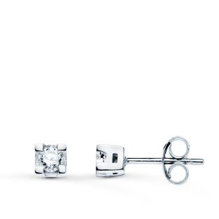 18K PENDIENTES ORO BLANCO DIAMANTES TALLA BRILLANTE 0.140 QTS 5.5 MM