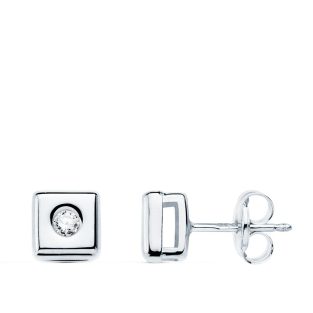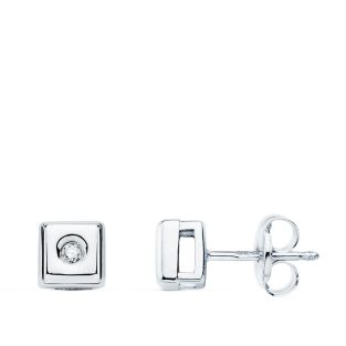 18K PENDIENTES ORO BLANCO CUADRADOS DIAMANTES 0.100 QTS. G-VS2. CIERRE PRESION