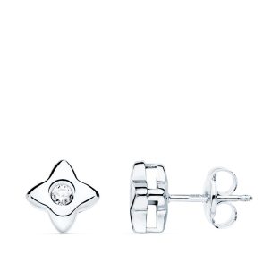 18K PENDIENTES ORO BLANCO ESTRELLA 5.5X5.5 MM DIAMANTE 0.040 QT. G-VS2.