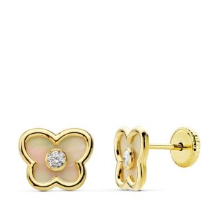 18K PENDIENTES ORO AMARILLO MARIPOSA NACAR 8X7 MM