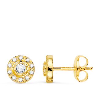 18K PENDIENTES ORO AMARILLO REDONDO CON CIRCONITAS 7 MM CIERRE PRESION