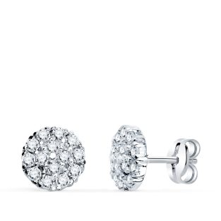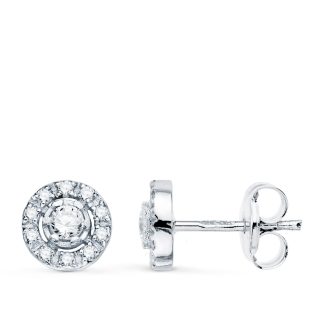 18K PENDIENTES ORO BLANCO REDONDO CON CIRCONITAS 7 MM CIERRE PRESION