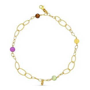 18K PULSERA ORO AMARILLO ESLABONES Y PIEDRAS DE COLORES. 18.5 CM