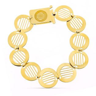 18K PULSERA ORO AMARILLO CIRCULOS Y ROMBOS ANCHO 18 MM LARGO 19.5 CM