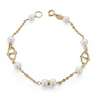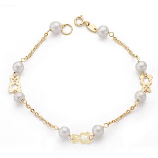 9K PULSERA ORO AMARILLO Y PERLA CON MOTIVOS ANIMALES 4.5 MM LARGO 16CM
