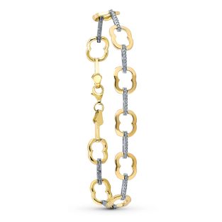 9K PULSERA ORO BICOLOR ROMBOS CON CIRCONITAS 19 CM