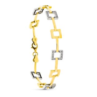 9K PULSERA ORO BICOLOR CUADRADOS CON CIRCONITAS 19 CM