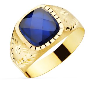 18K SELLO ORO AMARILLO HUECO CABALLERO ZAFIRO SPINEL