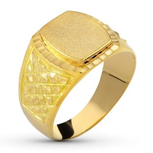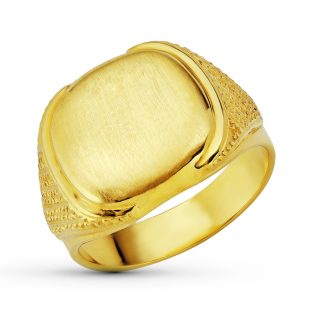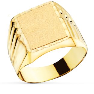 18K SELLO ORO AMARILLO CABALLERO MATE BRILLO TALLADO ZONA DE GRABACION 17X17 MM