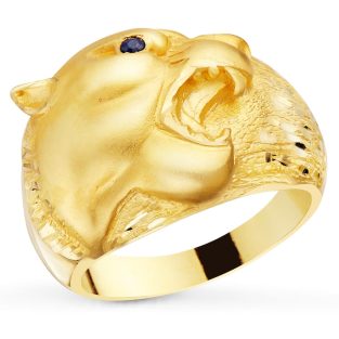 18K SELLO ORO AMARILLO MACIZO PUMA OJO ZAFIRO NATURAL. ANCHO 18 MM